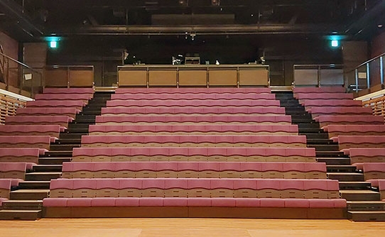 ○会場内では荷物は足元に置き、通路に置かないようにしてください。キャリーや大きな荷物は会場内へは持ち込めません。座る部分も階段状で下に置くスペースがないです。